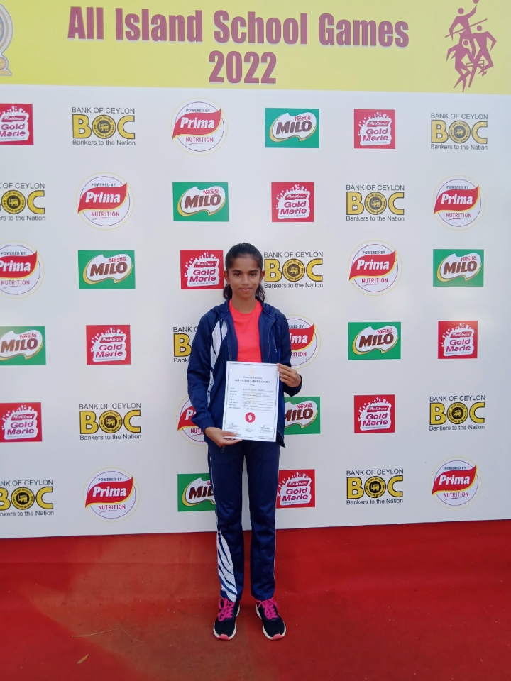 2022 සමස්ත ලංකා පාසල් මලල ක්රීඩා තරගාවලියේදී සෙ න් පහළ බාලිකා දෙසිය මීට තරඟයෙන් තෙවන ස්ථානය-හිමංජනා දෙව්මිණි